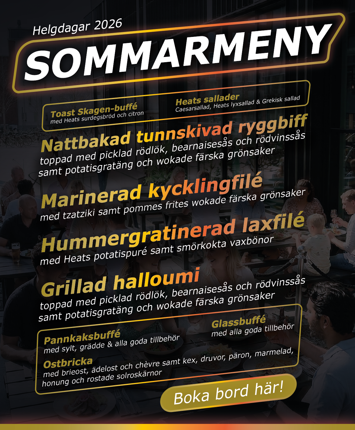 Heat Restauranger är kända för sin vällagade husmanskost och sitt fokus på att erbjuda högkvalitativa lunchalternativ. Från hösten 2024 är vi etablerade i Umeå och vi är glada över att kunna välkomna både nya och gamla gäster till vår restaurang. Vårt mål är att göra lunchen till dagens höjdpunkt och vi erbjuder en trivsam miljö för alla våra besökare. Oavsett om du är student vid det närliggande universitetet, resande från Östra station, eller en lokalbo, så har vi något för dig.